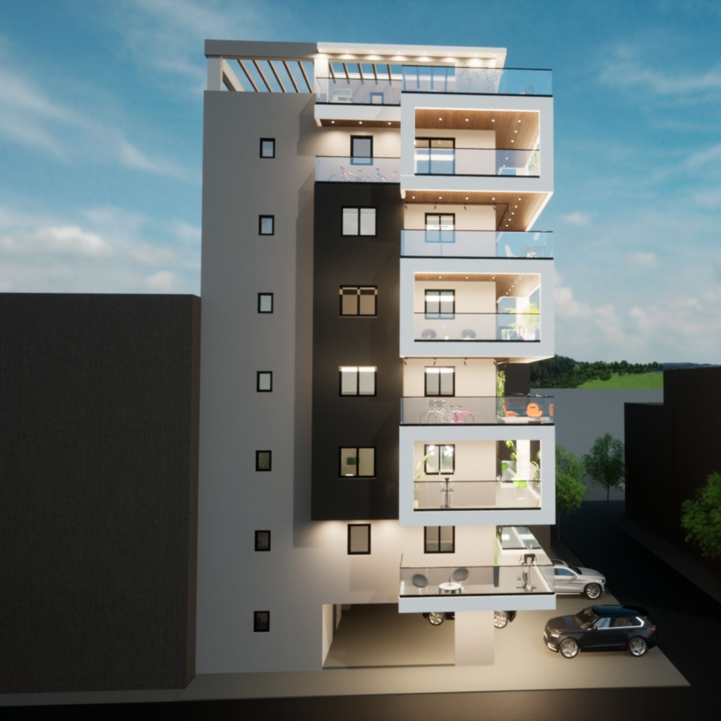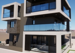 Οι εξώστες της μπροστινής όψης διαθέτουν γυάλινα κιγκλιδώματα, προσδίδοντας σύγχρονη αισθητική στο κτίριο, ενώ οι υπόλοιποι εξώστες εξοπλίζονται με ανθεκτικά κιγκλιδώματα αλουμινίου. Η ταράτσα και οι τοιχοποιίες μονώνονται πλήρως, ενισχύοντας την άνεση και την ενεργειακή οικονομία των κατοικιών.